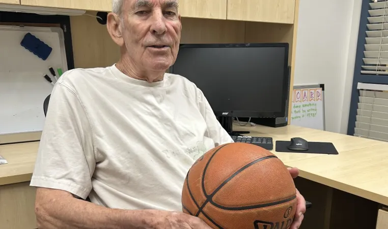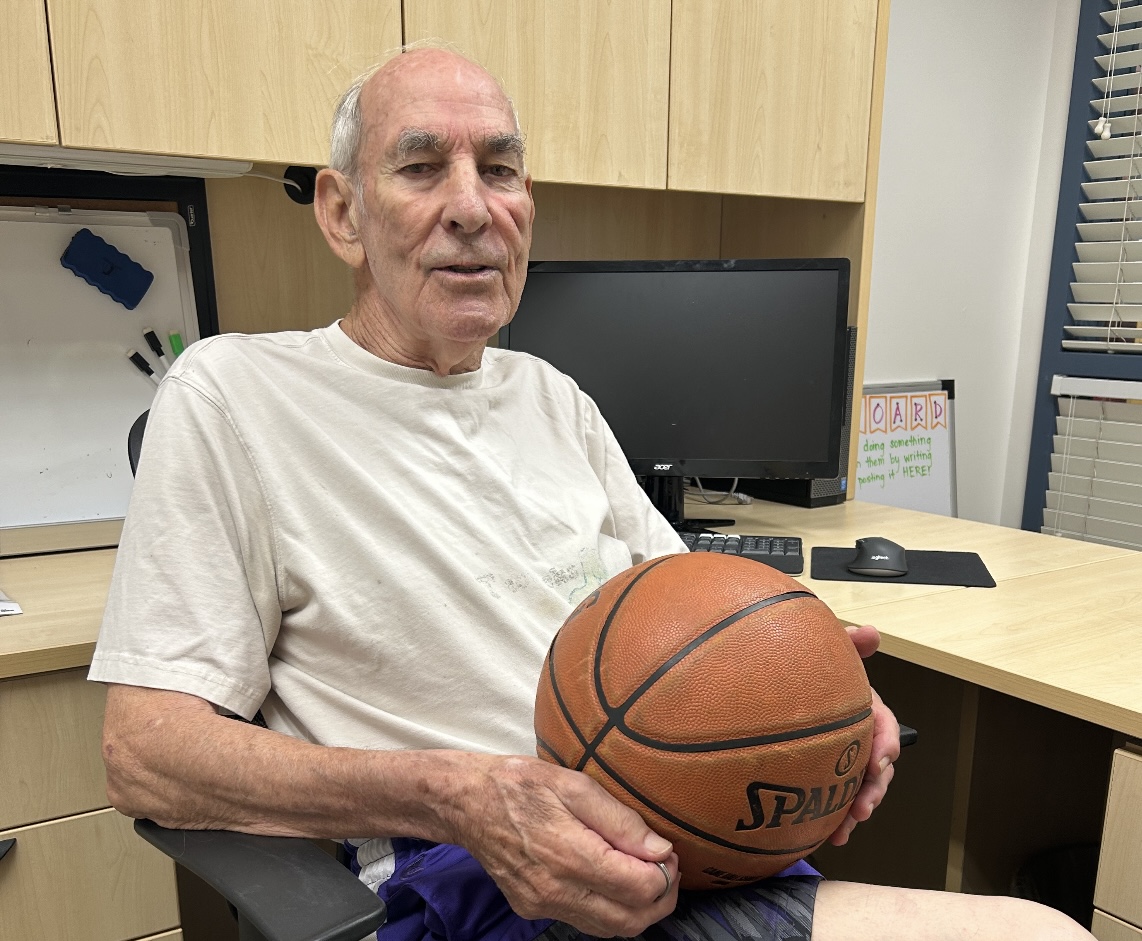 Today, Jerry is still dedicated to his Tuesday and Thursday basketball team, bringing “Oscar” along to join in the pickup basketball games during open gym time.