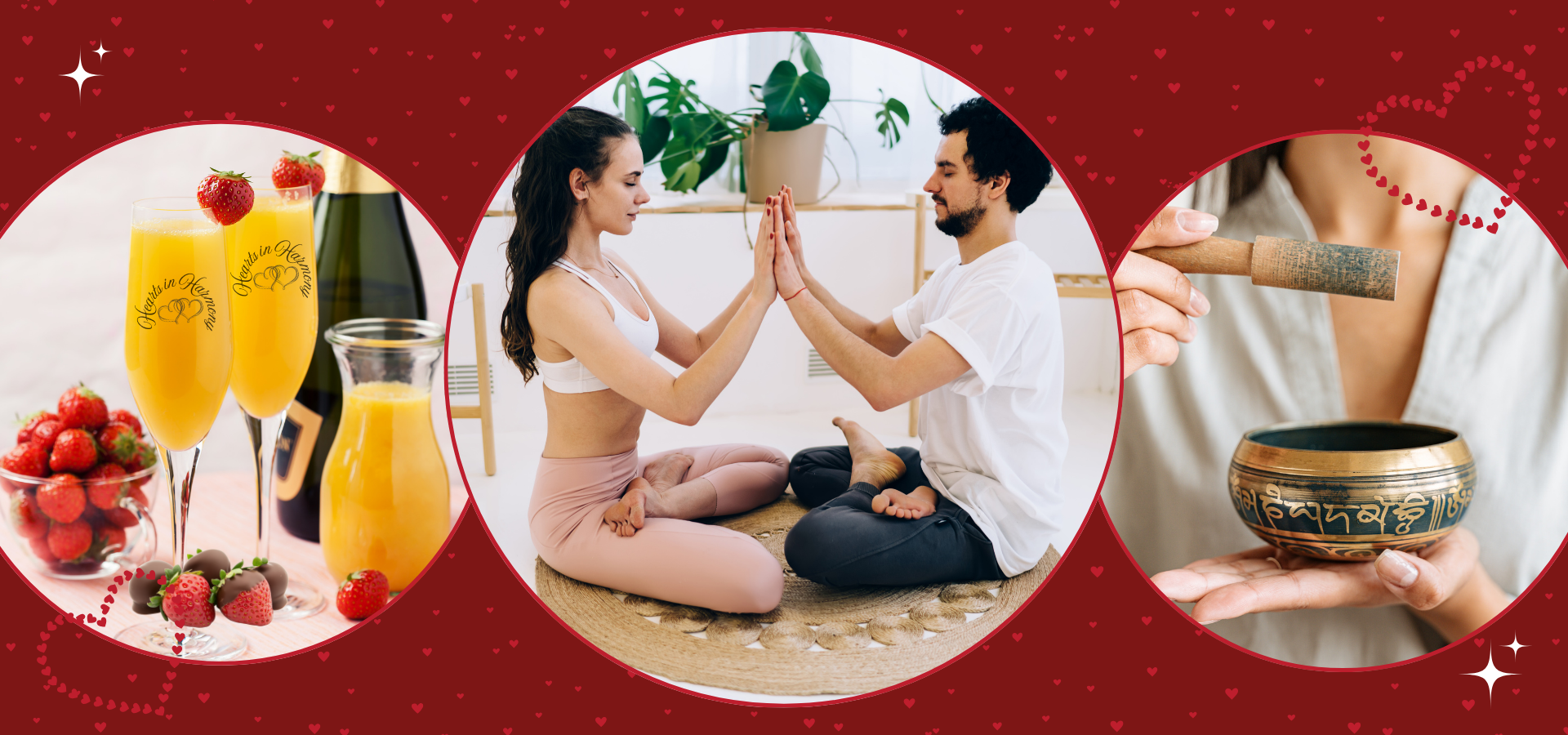 Start your Valentine’s morning with intention and connection. This 90-minute couples wellness experience includes gentle couples yoga, guided meditation focusing on love for self and one another, and sound therapy. Enjoy chocolate-covered strawberries, your choice of a mimosa or mocktail, and take home a commemorative keepsake flute to remember your time together.